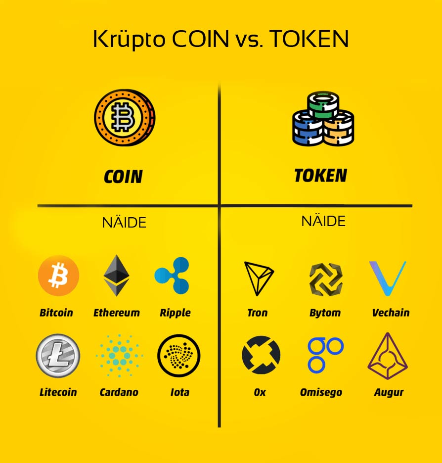 infograafik näitamaks krüpto coin ja krüpto token liigitamist ja erinevusiKrüpto maailm on kahtlemata põnev ja uuendusmeelne. Kuid inimestele, kes teemaga sina peal ei ole, tekitavad keerulised mõisted ja terminid tihti omajagu segadust. Siinkohal anname seletuse ühele sagedamini esinevatele küsimustele: “Mis on krüpto coin?” ja “Mis on krüpto token?”